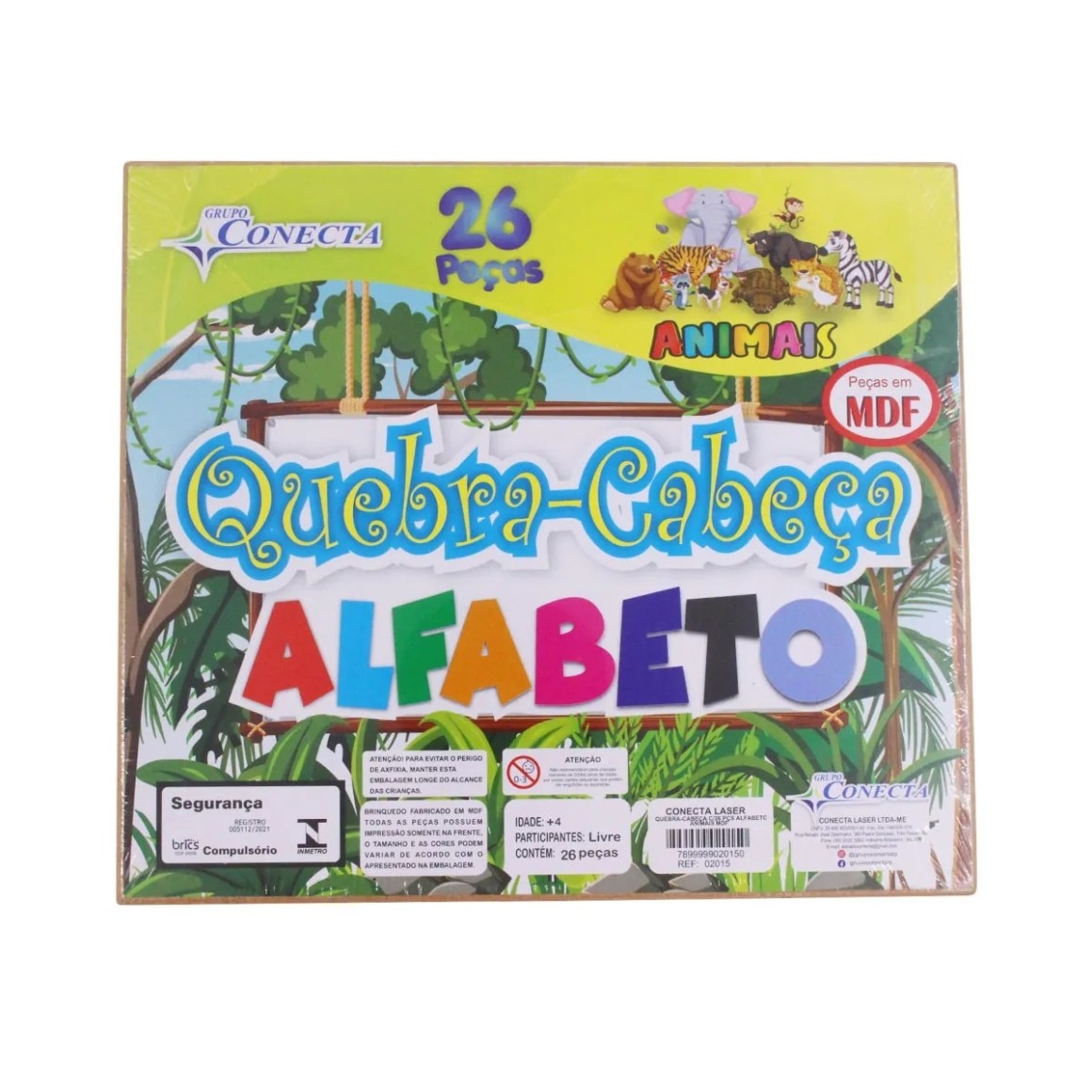 QUEBRA-CABEÇA MDF C/26PCS ALFABETO ANIMAIS UN. CONECTA BRASIL