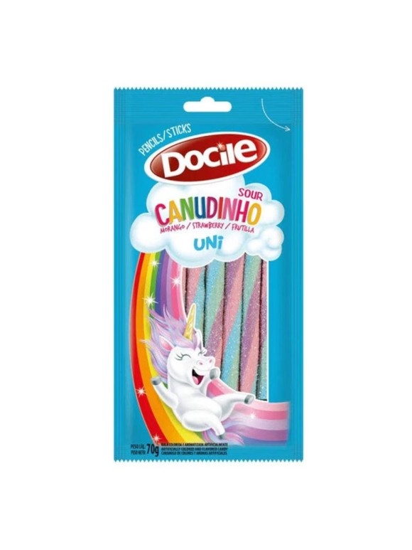 BALA REGALIZ CANUDINHO COLOR MORANGO UNI 70G UN. DOCILE