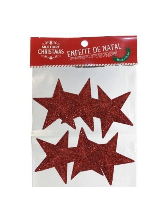 ENFEITE ESTRELA DE NATAL 7,5X7CM CARTELA C/6 PCS UN. MULTIART