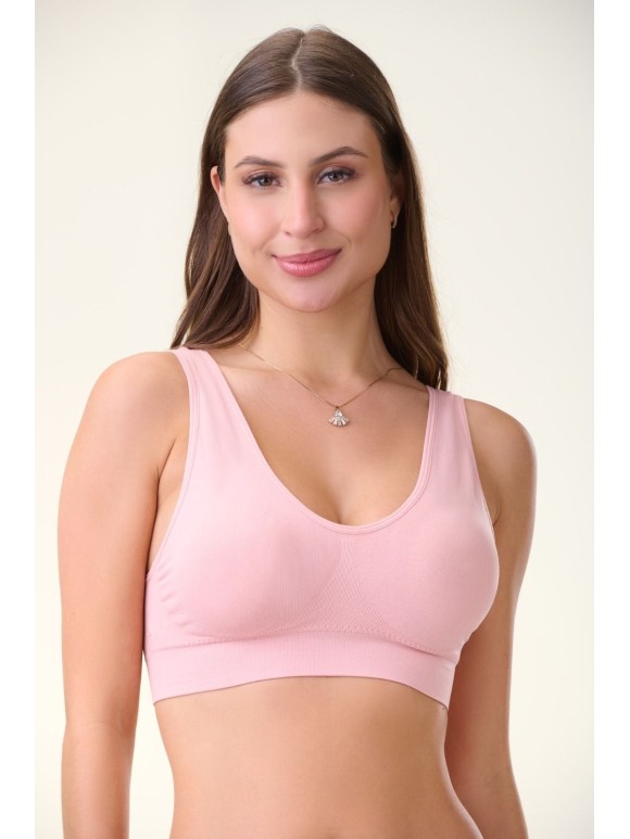 Top Rosa Adulto M Sem Costura com Bojo Removível, Confortável, Anatômico, Toque Suave e Ideal para Uso Diário