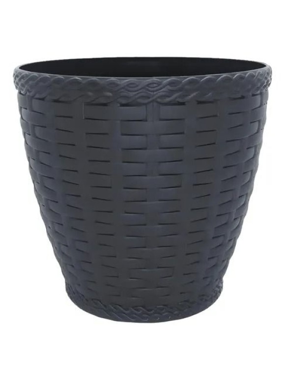 Vaso Rattan Redondo 10L Preto – Decoração Sofisticada para Casa e Jardim