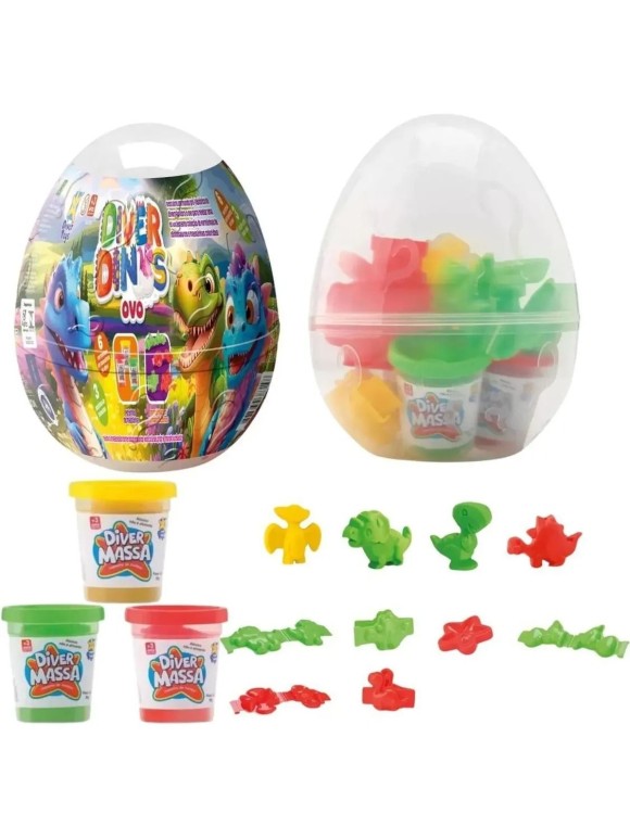 Prepare-se para explorar um mundo de criatividade com o Diver Dinos Ovo, um brinquedo educativo e super divertido da Divertoys! Basta abrir o ovo para descobrir 3 potinhos de massinha colorida e 6 forminhas de dinossauro incríveis, perfeitas para criar figuras jurássicas e soltar a imaginação.