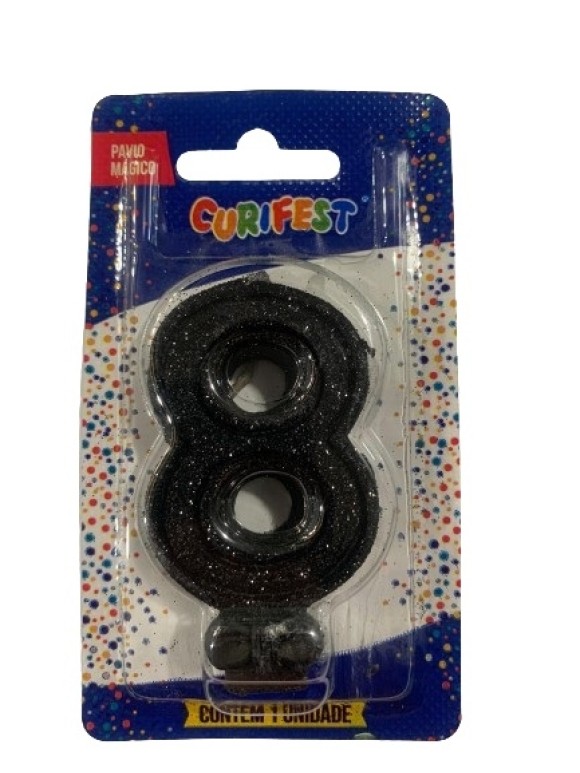 VELA SUPER NUMERO SIMPLES PRETO N 8 - (1738) UN. CURIFEST