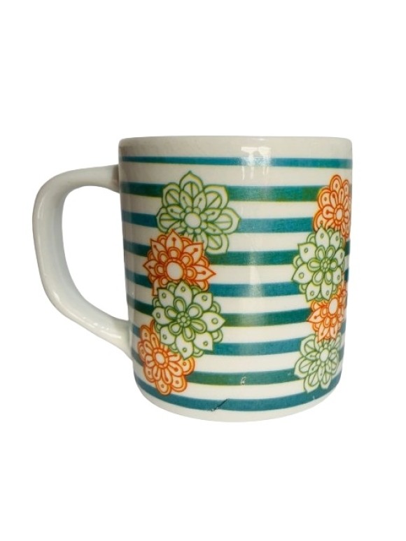 CANECA 300ML FLORES FAIXA UN. TERRAMADA
