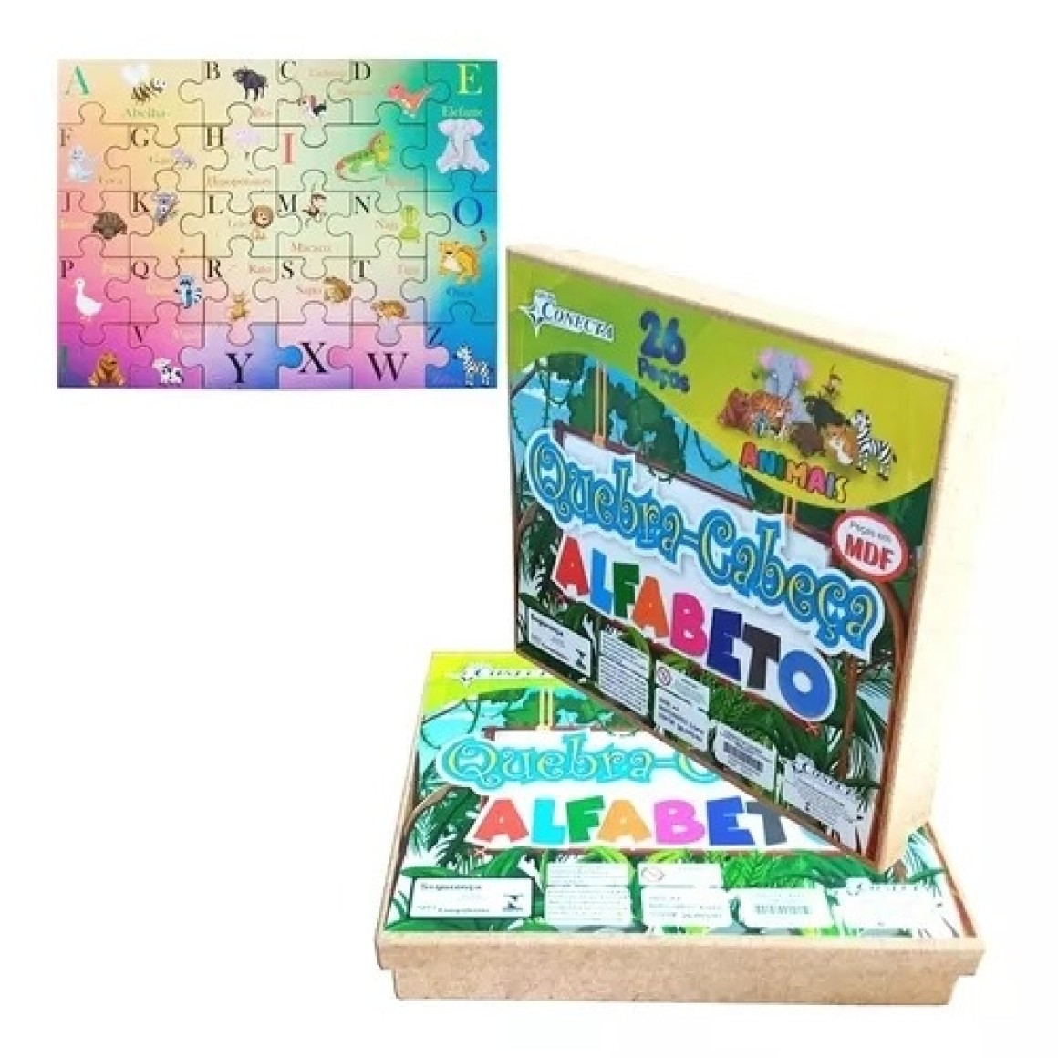 QUEBRA-CABEÇA MDF C/26PCS ALFABETO ANIMAIS UN. CONECTA BRASIL