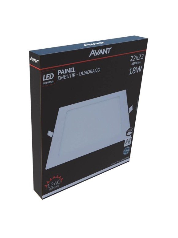 PAINEL DE EMBUTIR LED QUADRADO 22X22CM 6500K 18W 858101378 UN. AVANT