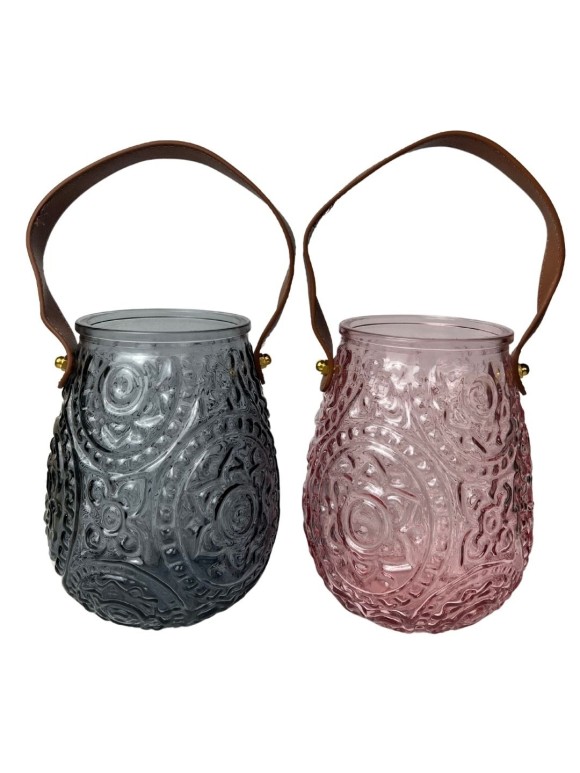 VASO DE VIDRO COLORIDO COM ALCA 11X15,5CM