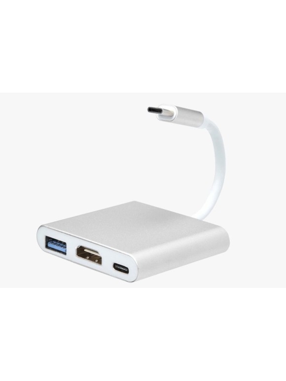 ADAPTADOR HUB PRATA TIPO C - TIPO C - USB - HDMI UN.