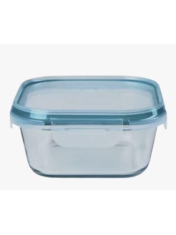 POTE DE VIDRO 320ML HERMETICO QUADRADO AZUL CLARO UN.