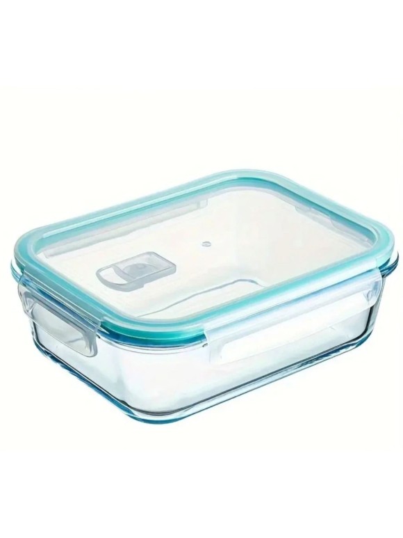 POTE DE VIDRO 400ML HERMETICO RETANGULAR AZUL CLARO UN.