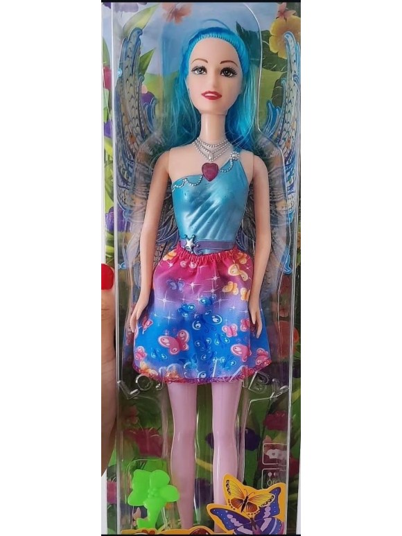 - Boneca Fada Com Asas, Pretty Girl com Acessorios Incluindo Sandalia, Brincos, Tiara, Bobs e Bolsa