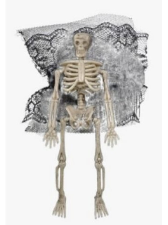 Cor: Predominantemente preta e branca (imitando esqueleto)