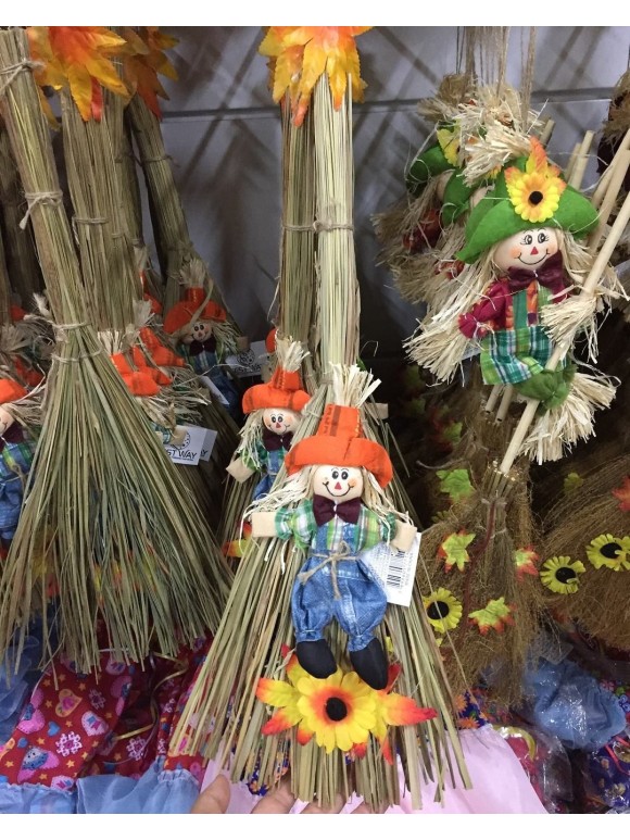 Com 1,20m de comprimento, a vassoura é confeccionada em materiais resistentes e leves, permitindo praticidade no manuseio. O detalhe do espantalho decorativo confere autenticidade e um charme especial, tornando-a diferente das vassouras comuns.