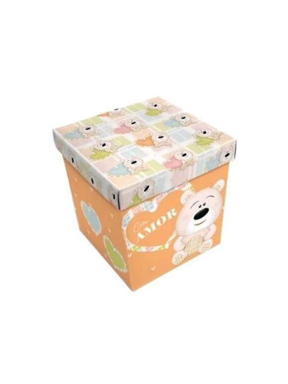 Caixa De Presente Alta Ursinho Com Amor 22x22x18cm
