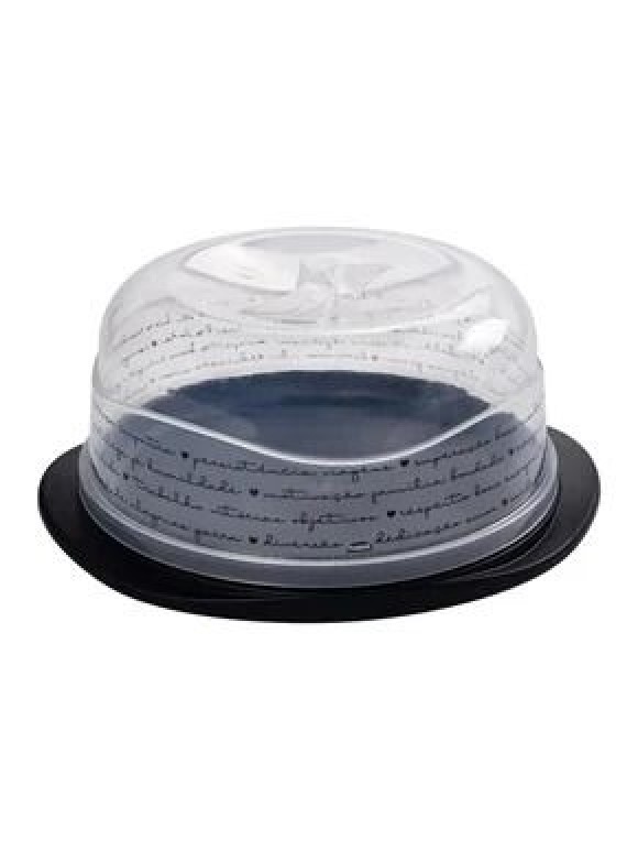 Boleira Redonda Decorada Preta Plasutil com Tampa