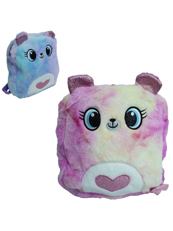Mochila de Pelúcia Infantil Feminina Ursinho 23,5x28,5x7,5cm Fofa Leve e Confortável para Escola Passeios Viagens e Presentes para Crianças
