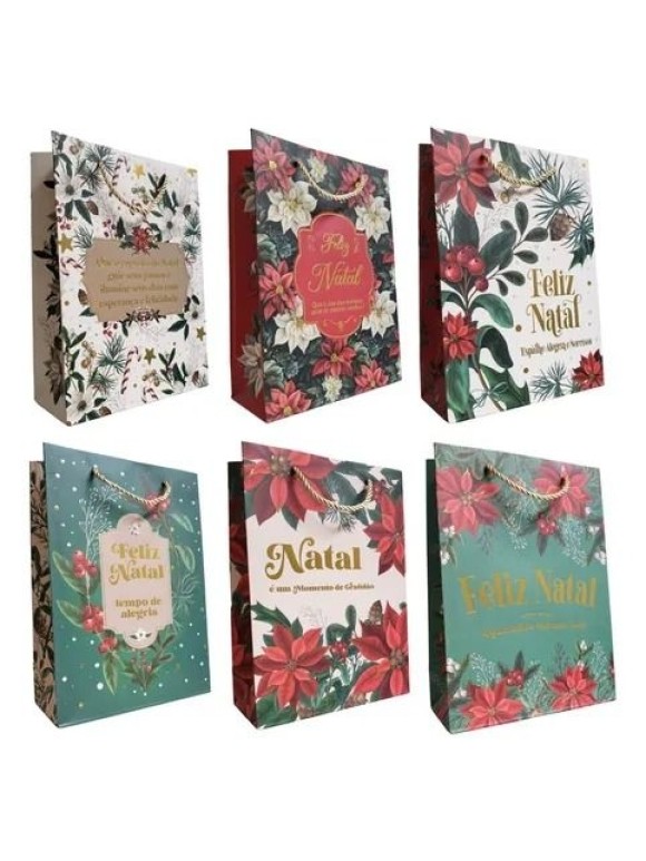 A sacola natalina de papel é produzida com material resistente, ideal para comportar diferentes tipos de presentes, desde roupas, acessórios e perfumes até brinquedos e objetos decorativos. Seu acabamento conta com estampas natalinas, que remetem ao clima festivo, trazendo mais alegria e encanto para a troca de presentes.