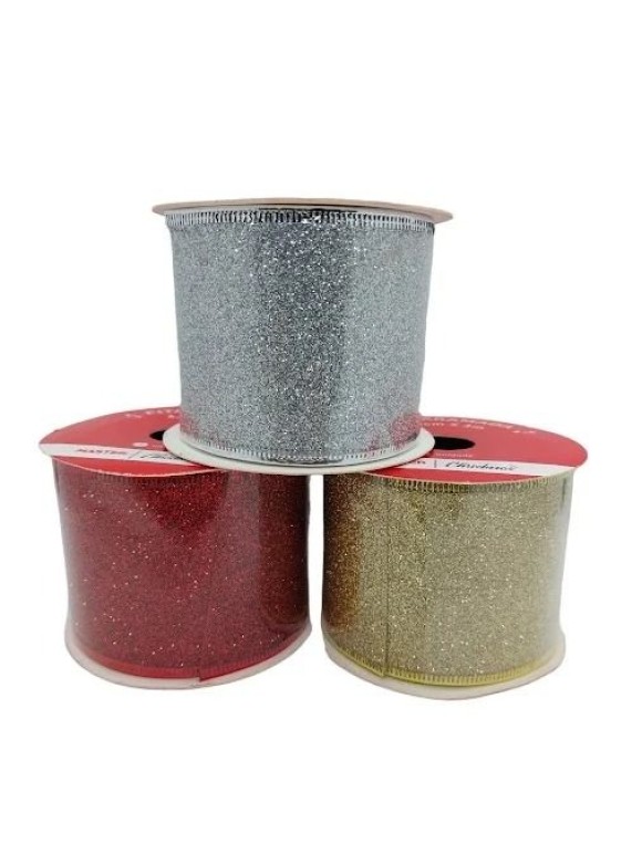 Fita Decorativa Glitter Shine Sortida Natal Artesanato Laços 6,3cm x 2,7m
