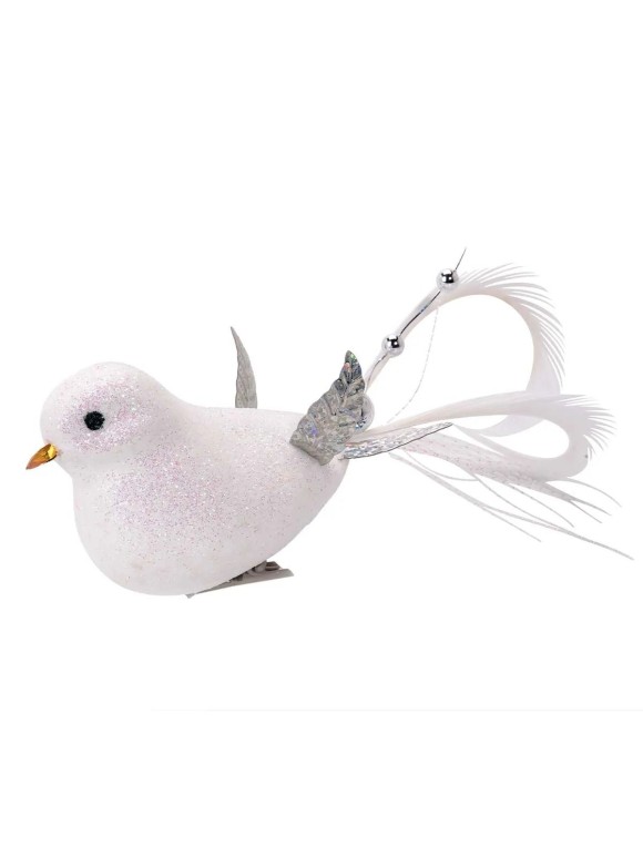 - Enfeite Natalino Pássaro Branco com Glitter 12×4 cm – Decoração de Natal em Poliéster para Árvore, Guirlandas e Arranjos