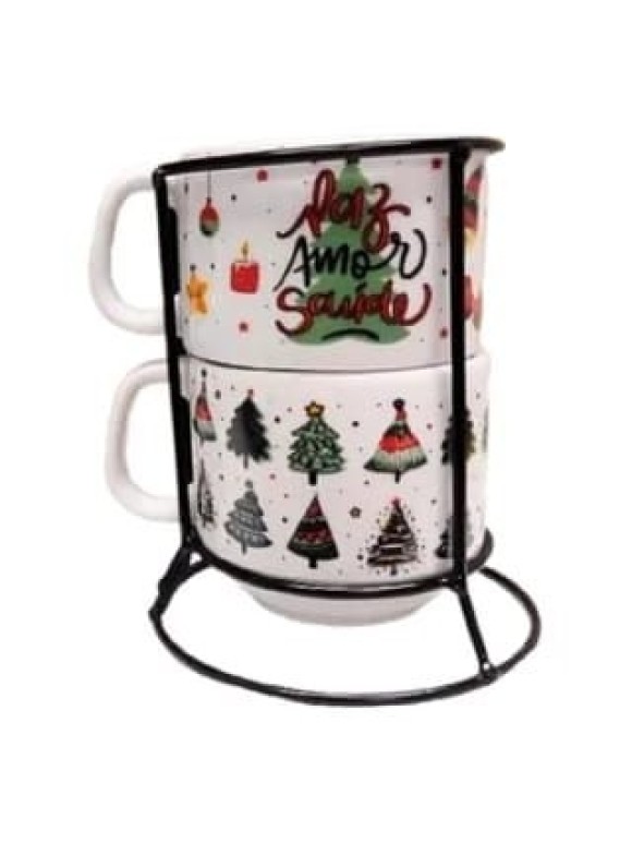 O kit acompanha um conjunto completo de xícaras natalinas com pires, ideal para presentear ou usar em ocasiões especiais.
