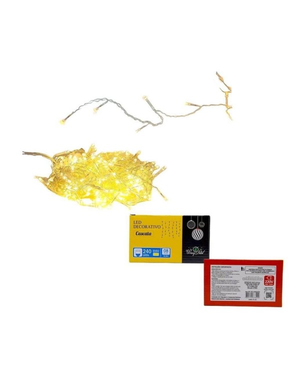 Composta por 240 lâmpadas LED de alta intensidade, a cascata proporciona um efeito visual em queda de luz, semelhante a uma cortina iluminada. O tom branco/amarelo (branco quente) é perfeito para quem deseja um clima mais aconchegante, trazendo elegância e conforto para qualquer espaço.