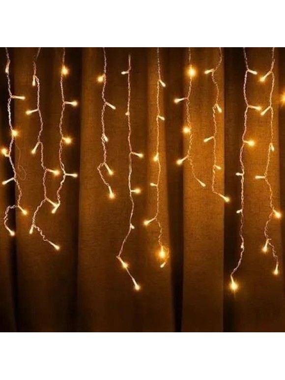 - Cascata LED 100L Branco Quente 220V – Iluminação Natalina Decorativa com 8 Funções de Piscar para Fachadas, Varandas e Janelas