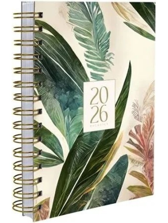 - Agenda 2026 Wire-O Folhagem 15x21cm Capa Dura Laminada com Miolo Datado e Planejamento Diário e Mensal Completo