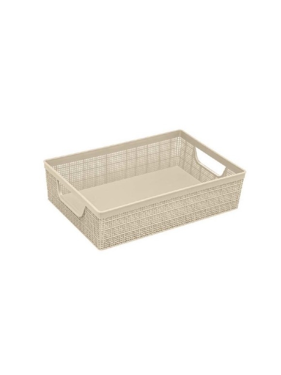Produzida em plástico rígido de alta qualidade, a Cesta Juta 11,5L Cru oferece grande capacidade para armazenar objetos maiores, como roupas, toalhas, brinquedos, materiais de limpeza, utensílios domésticos, documentos e muito mais. Sua estrutura reforçada garante durabilidade, mesmo com uso diário.
