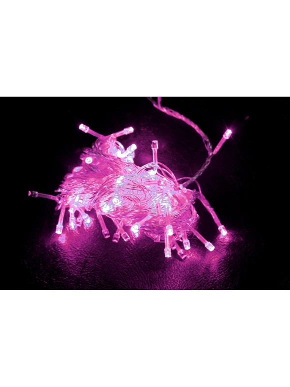 Pisca Led 100l Rosa 9m Fio Transparente 8 Funções 220v Para Decoração Natalina