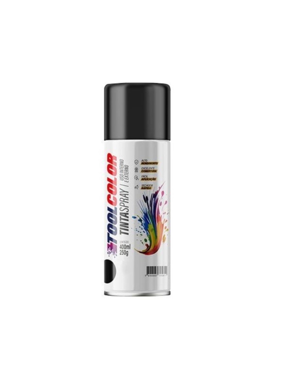 Tinta Spray Toolcolor UG Preto Fosco 400ml Alta Cobertura, Secagem Rápida e Acabamento Profissional