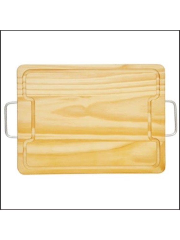 Seu formato com cabo ergonômico facilita o manuseio e o transporte dos alimentos, garantindo mais segurança no uso diário. Compacta e funcional, ela oferece uma superfície ampla de corte, ideal para carnes, legumes, frutas e frios. Além disso, o visual rústico da madeira natural de pinus adiciona um charme especial à cozinha ou à área de churrasco.