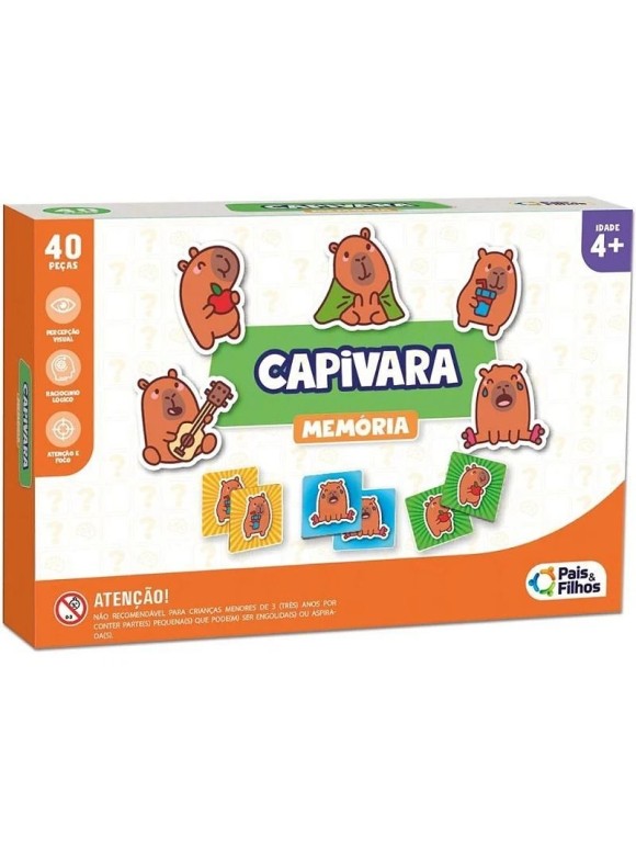 - Jogo da Memória Capivara Pais & Filhos 40 Peças – Brinquedo Educativo Infantil, Desenvolvimento Cognitivo e Diversão em Família