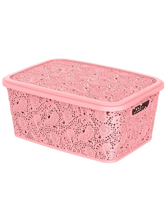 CESTO ORGANIZADOR C/ TAMPA 2,2 L ROSA RENDA FLORAL UN.