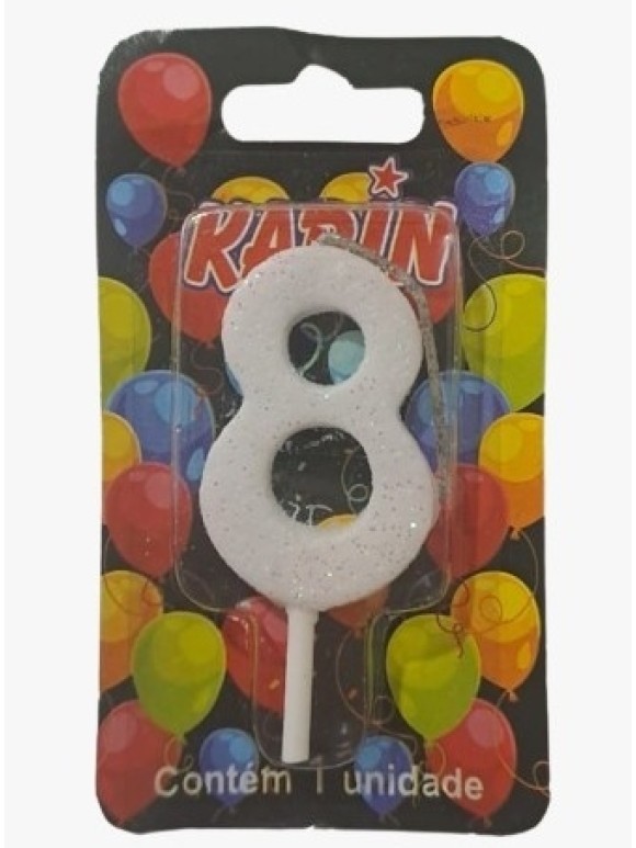 VELA DE ANIVERSARIO N.8 BRANCA C/ GLITTER UN. KARIN