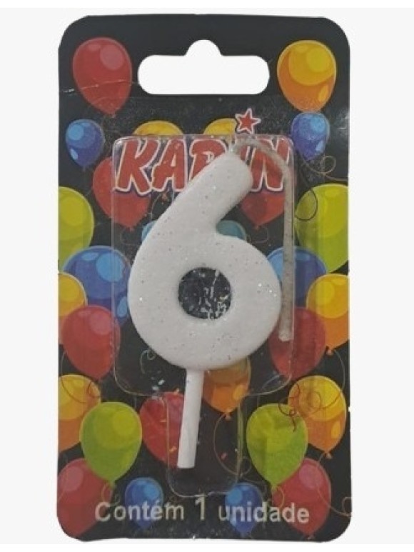 VELA DE ANIVERSARIO N.6 BRANCA C/ GLITTER UN. KARIN