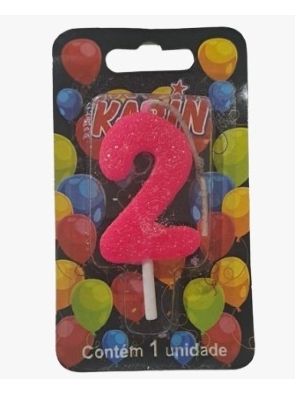 VELA DE ANIVERSARIO N.2 ROSA C/ GLITTER UN. KARIN