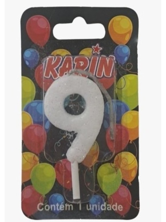 VELA DE ANIVERSARIO N.9 BRANCA C/ GLITTER UN. KARIN