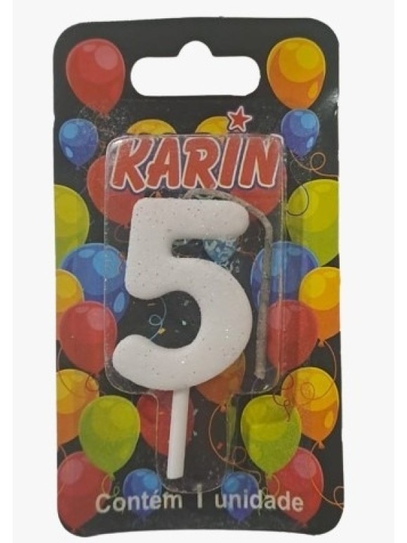 VELA DE ANIVERSARIO N.5 BRANCA C/ GLITTER UN. KARIN