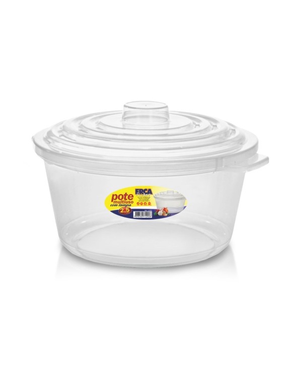 O pote multiuso com tampa ERCAPLAST é um recipiente versátil projetado para armazenar uma variedade de itens em casa, como alimentos, utensílios, produtos de higiene pessoal, entre outros. A tampa ERCAPLAST geralmente é feita de plástico resistente e é projetada para vedar hermeticamente o pote, mantendo o conteúdo fresco e protegido contra sujeira e insetos. Com capacidde de armazenar 2,5 litros.