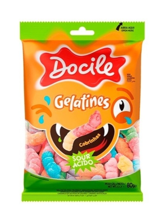 BALA DE GELATINA GELATINES COBRINHAS CITRICAS 80G UN. DOCILE