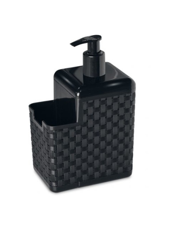 PORTA DETERGENTE E ESPONJA COM BICO DOSADOR RATTAN PRETO 8X12X13,5CM