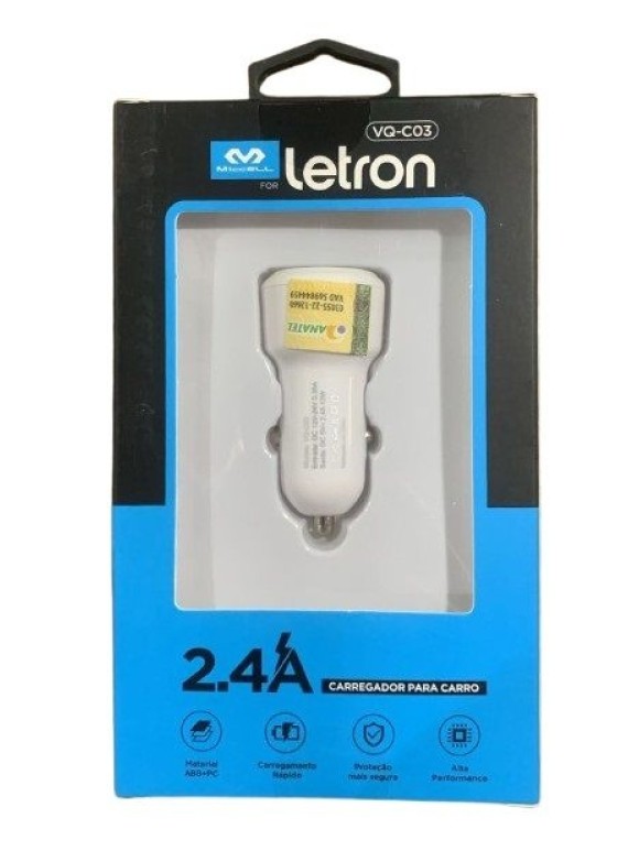 CARREGADOR VEICULAR 2 USB - BRANCO 2.4A UN.